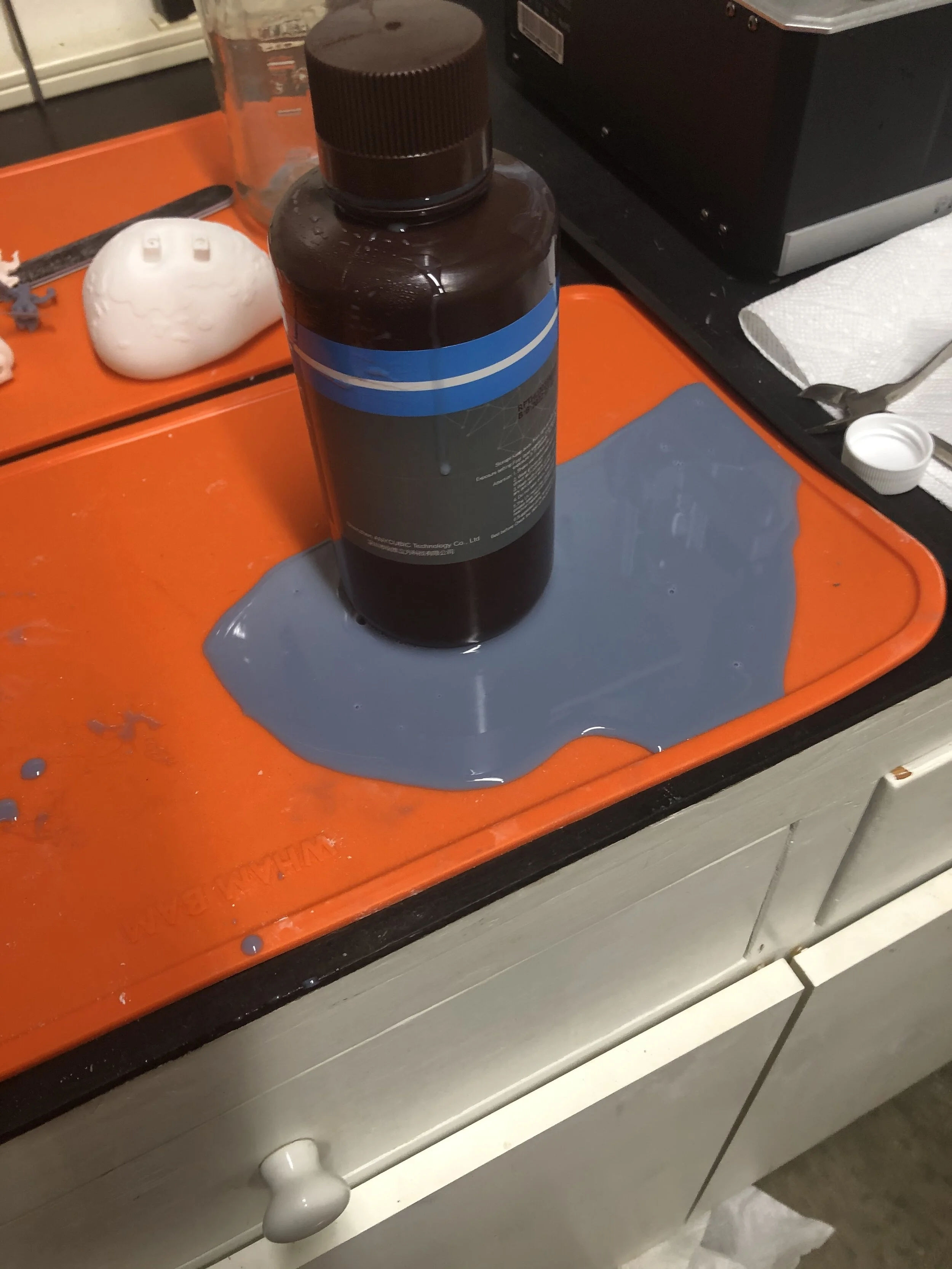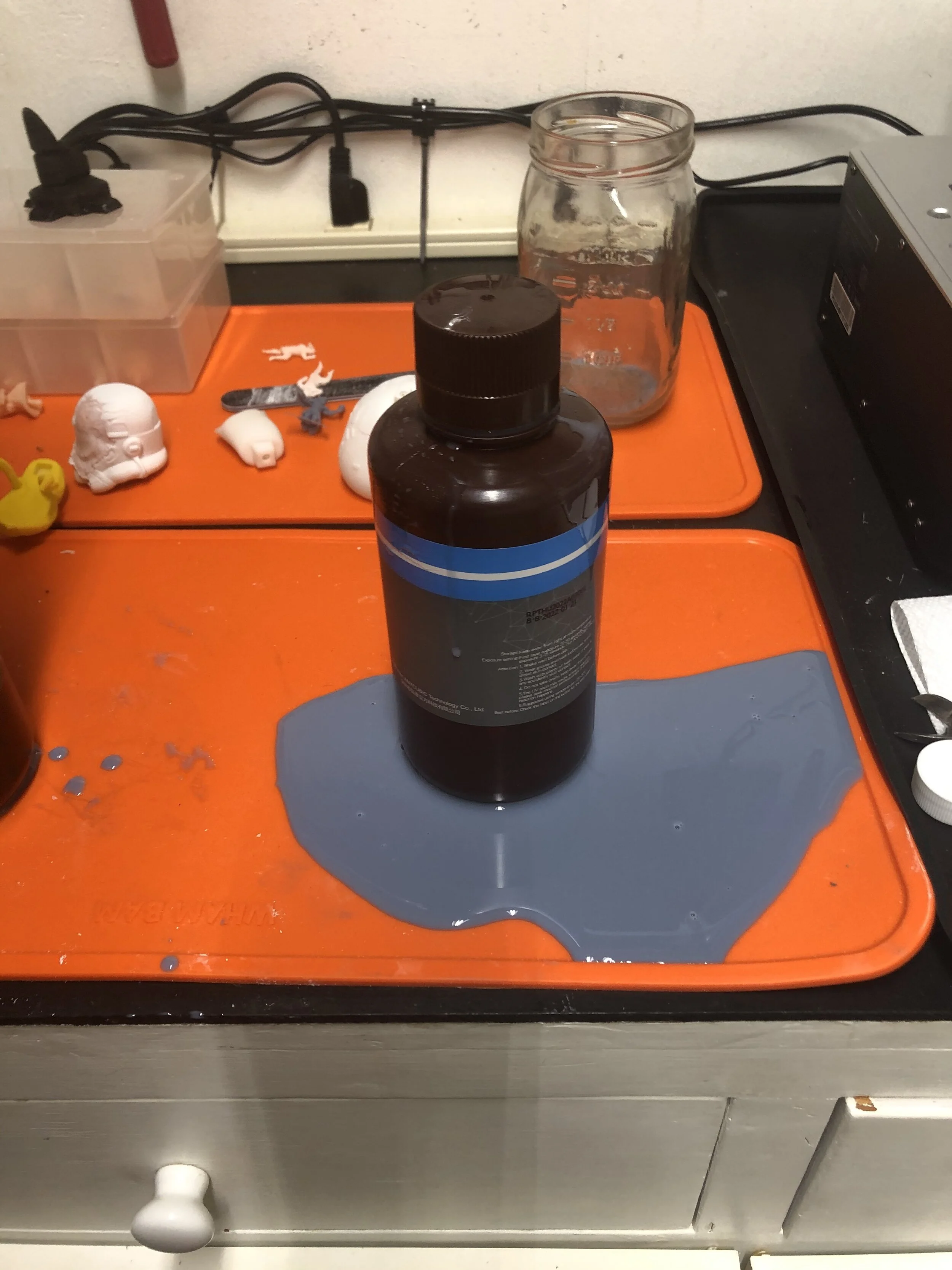 First overflow accident. Thankfully I had my WHAM BAM Slap Mat in place. UV'ed the liquid and made it solid and easily disposed it.